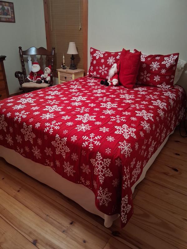 Celebrate the holidays in cozy style with our Snowflakes woven matelassé coverlet set featuring a delicate, all-over snowflake pattern in classic red and white, this set brings the beauty of a winter wonderland to your bedroom. Made from durable polyester fibers, the coverlet is as cozy as it is eye-catching. The reversible design offers two looks in one, making it easy to refresh your holiday decor. Add a touch of festive charm and warmth to your home this season with the Snowflakes coverlet set from Greenland Home Fashions.