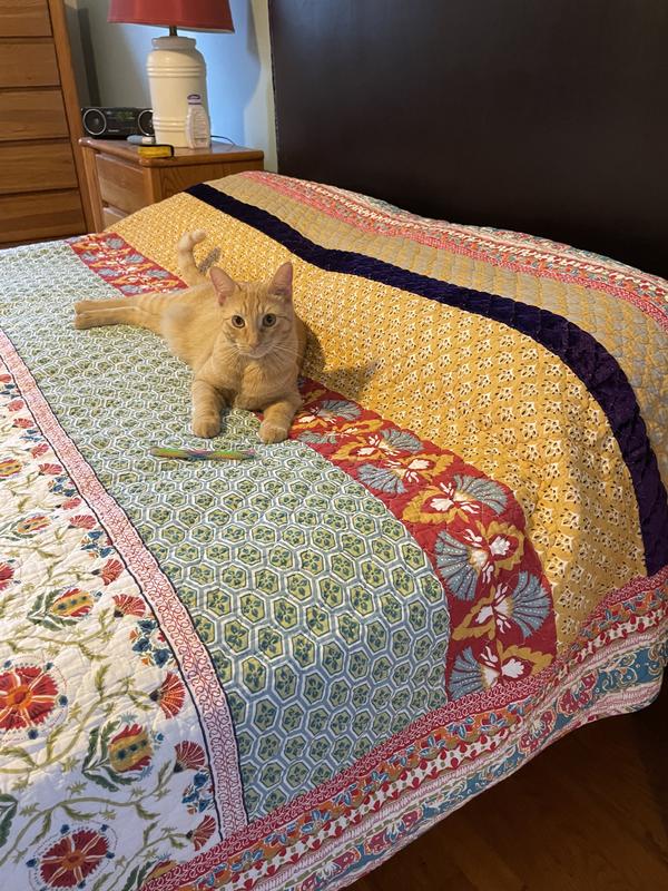 I’m very happy with this purchase. The quilt is well made and just beautiful. It brightens up my monochromatic bedroom with pattern and color.