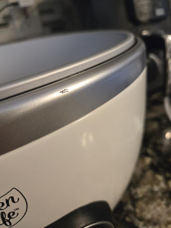 I have used the new slow cooker a few times, but noticed there were small chips on the side of the pan. I have never put it in the dishwasher, so was disappointed to see chips in the removable pan and also one on the handle. I really thought this lightweight slow cooker was going to be the best one I've had, but I guess not.