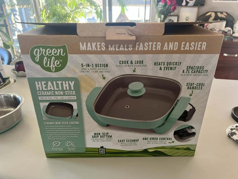 We love our new GreenLife Electric Frypan in Turquoise, it cooks so amazing, and it feels like I am 18 again cooking with this type of frypan, like we did in the old days, we are 57 years old, and thought we could do with one of these, and it is so great, the price on sale was great too, delivered quickly, very happy with our purchase the colour is so cute, great little investment to have in the kitchen or caravan. Happy Customers from Perth WA.