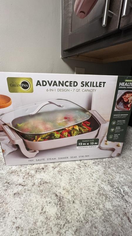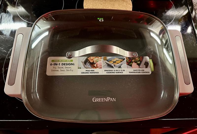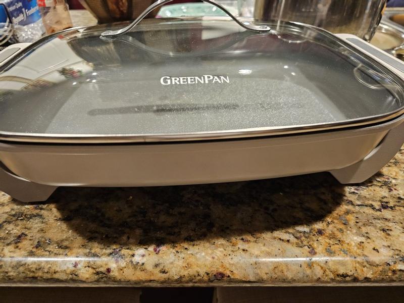 I love this skillet for its non stick chemical free cooking surface. My only complaint is that the legs and handles are plastic and break easily. My original order was received with one of the legs broken, but Green Pan did replace it for me. I still wish they would make the legs and handle with a stronger material.