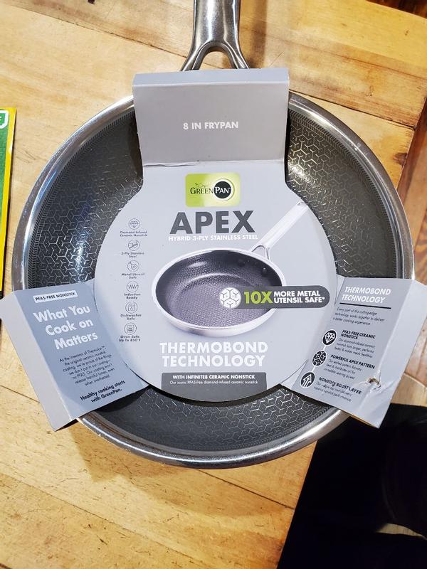 Greenpan GreenPan Apex 8 inch Frypan is definitely an upgrade from the pans I'm used to! I've tried and loved other pots and pans from the brand and was super excited about this one. The Hybrid 3-ply Stainless Steel Thermobond Technology is really next level and makes it far easier to cook foods to perfection. Infinite Ceramic Nonstick is so next level, and it's also 10x more metal utensil she, so it's a great product for anyone. I love it.