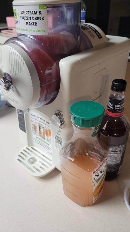 this product is fantastic! small enough to fit on a countertop, reasonably quiet while in use, and incredibly easy to operate AND clean. you can make a variety of drinks and ice cream / sorbets. the instructions even come with some recipes. it’s super easy to change the consistency if you want it to be thicker and the cleaning process makes me likely to use it long term bc it’s not a hassle. i can’t recommend enough!