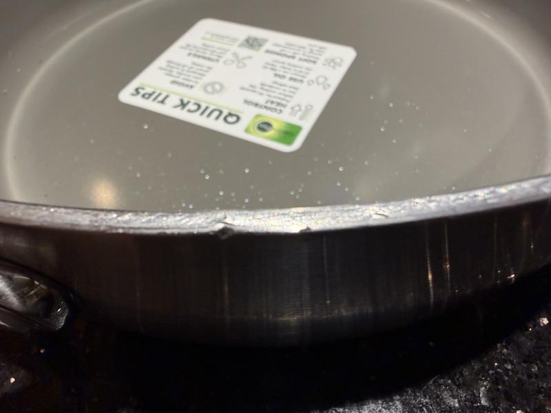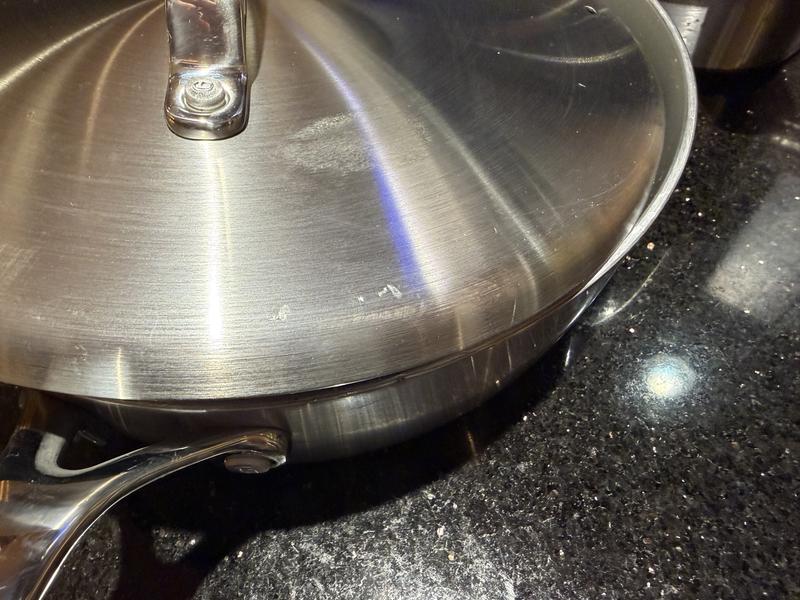 3 Months ago I received a Greenpan GP5 12" frying pan with the handle protruding 12" out of the box, so that it had several scratches on the handle. Yesterday, the same shipper sent me a GP5 4-quart sauce pan in the same cheap box with the metal top loose inside the box. The cover bounced around inside the box, causing numerous deep dents on the circumference of the pan, and there are scratches on the frying pan cover. My work schedule is very tight, so I still have these pans, but someone should FIRE the person packing these expensive pans so poorly!