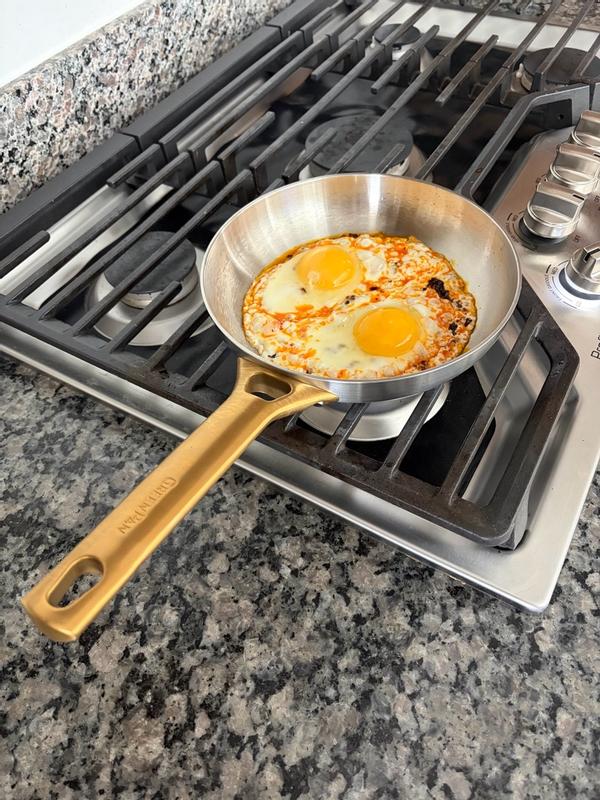 A fantastic small frypan! It’s very durable and quite heavy duty! The finishes are quite aesthetic but overall a great pan! Love this for a small dish or even eggs! Easy to clean and as long as you know how to cook on SS it’s quite easy!