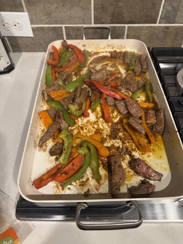 My favorite pan. I use this pan all the time and I’ve already had a few family members purchase it for themselves as well. Saves dishes and works great for when feeding a family.