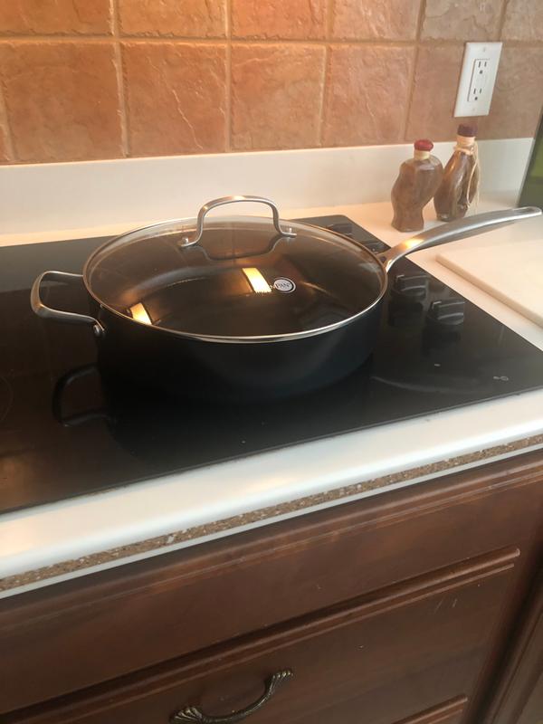 Great sauté pan. Cooks at low heat and cleans up with a simple sponge. Love it