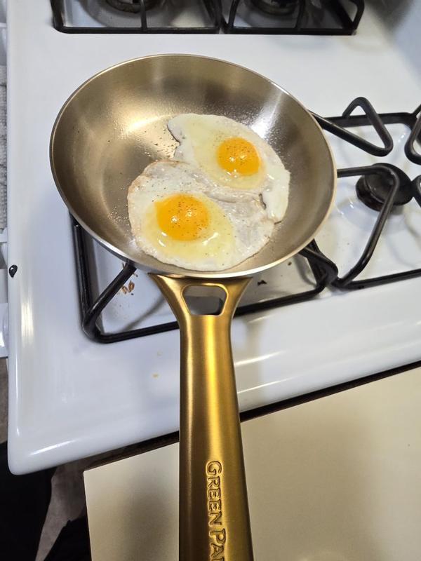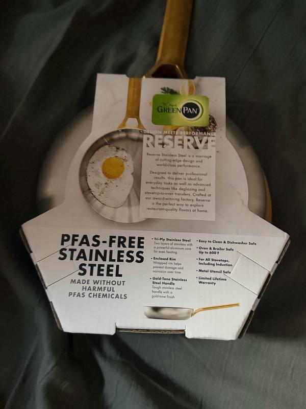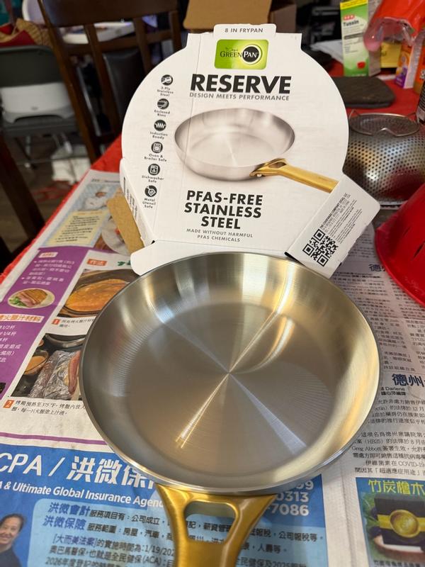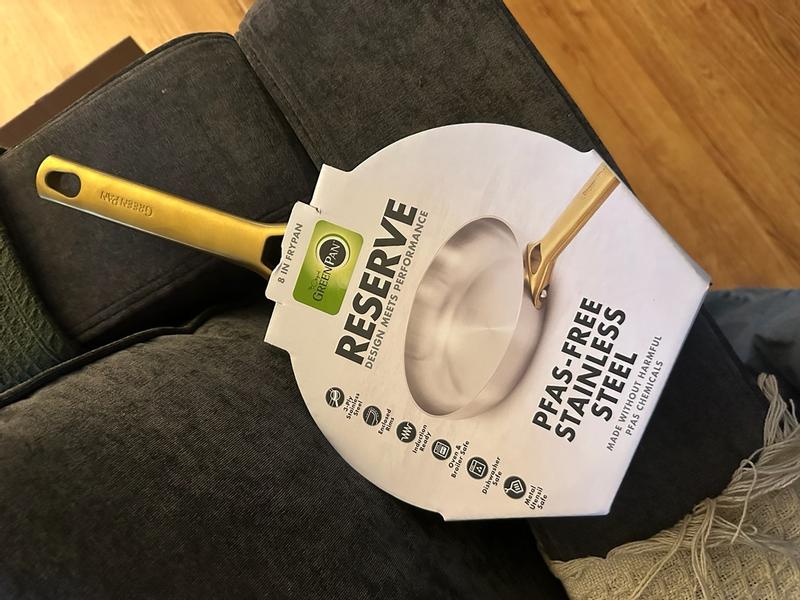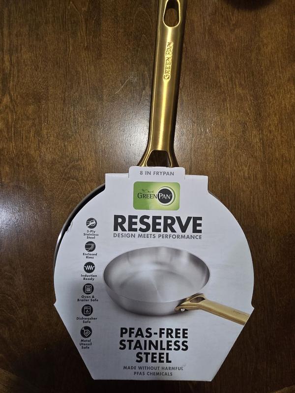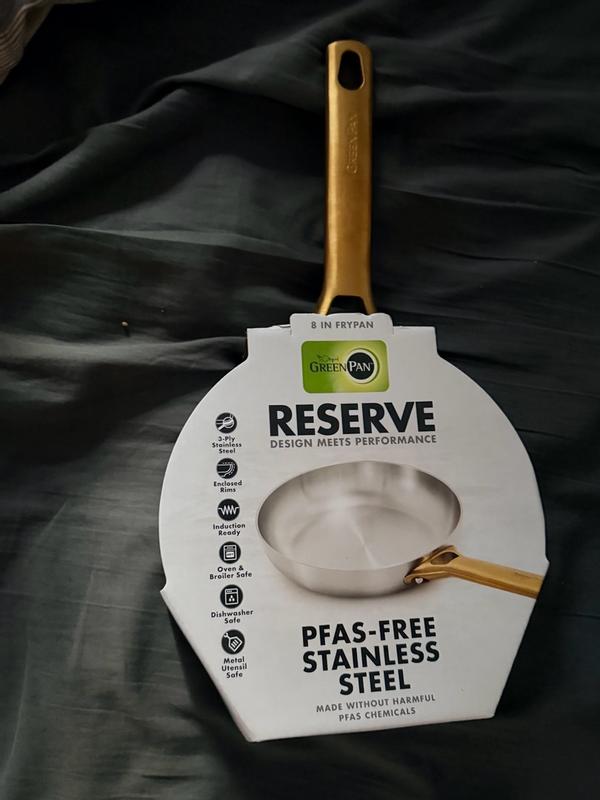 I absolutely love the GreenPan Reserve Stainless Steel 8” Frypan. The design is sleek and high-end, and it feels very sturdy in hand. Heat distribution is excellent, allowing food to cook evenly without hot spots. When preheated properly, food releases easily with minimal sticking, making it great for eggs, fish, and sautéed vegetables. The handle is comfortable and stays cool while cooking, which adds to the overall ease of use. Cleaning is quick and simple, and the stainless steel surface still looks brand new after multiple uses. This pan delivers professional-level performance and quality.