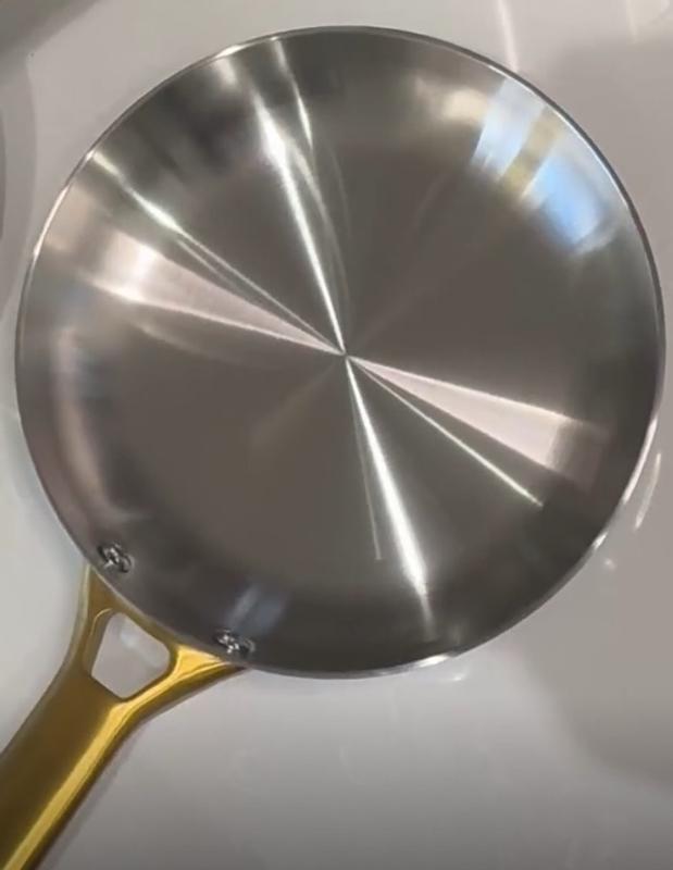 This pan is well made and heats evenly. The 8 inch size is perfect for cooking small meals like eggs or vegetables. It feels sturdy and the handle is comfortable to hold. Food can stick if you don’t use enough oil but that’s normal for stainless steel. Overall it’s a good quality pan for everyday cooking.