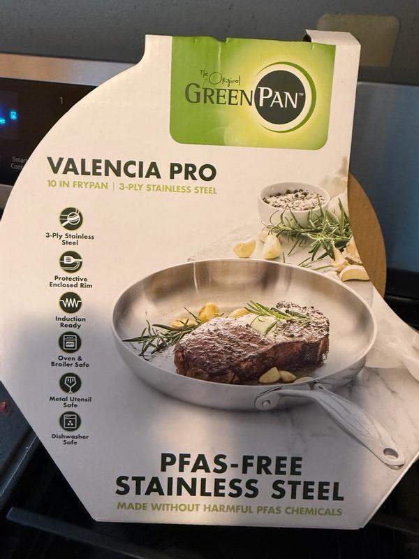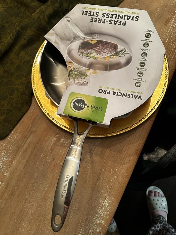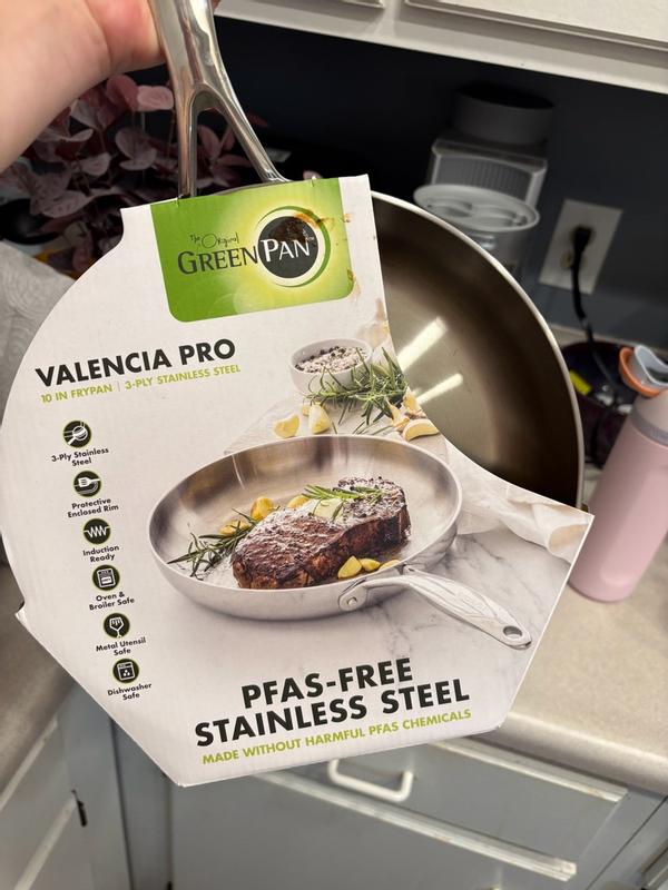 I’ve been really impressed with the GreenPan Valencia Pro 10” Stainless Steel Uncoated Frypan. The build quality feels excellent — solid and well-made without being overly heavy. The weight is nicely balanced, making it easy to handle while still feeling sturdy on the stovetop. It heats evenly and has plenty of capacity for everyday cooking like sautéing, searing, or cooking proteins without overcrowding. I also appreciate how easy it is to maintain; with proper preheating and cleaning, it performs well and cleans up nicely. Overall, it feels like a durable, high-quality pan that’s made to last.