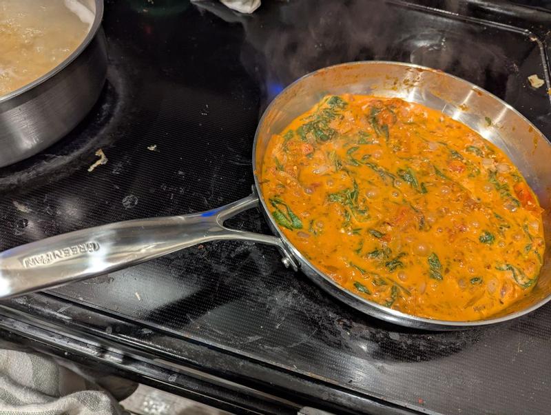 These pans have become my daily driver! No glamorous pictures, just rushed morning eggs! Just picking the pans up you can tell by their weight they're solid and nicely made. The first time I used them, I was sold. Heats evenly, no sticking. They wipe clean so easily, but even if you're feeling lazy, they're dishwasher safe. Highly recommended!