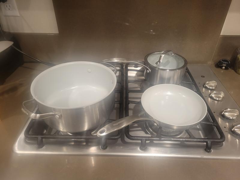 Very happy with our purchase. Love the stainless look and the pots and pans have exceeded expectations.