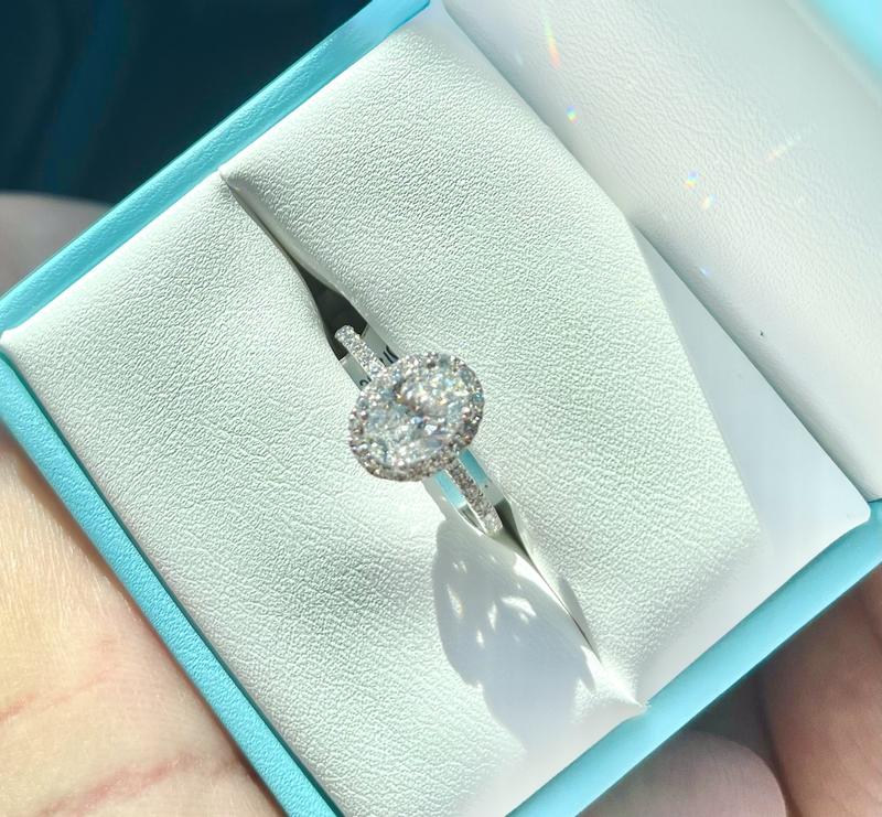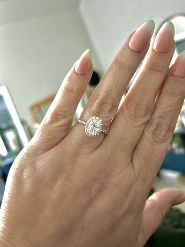 My fiancé and I looked at multiple rings and this one tops them all. I love the shape and size of the ring. I’ve always wanted an oval diamond and this one is so sparkly. ❤️