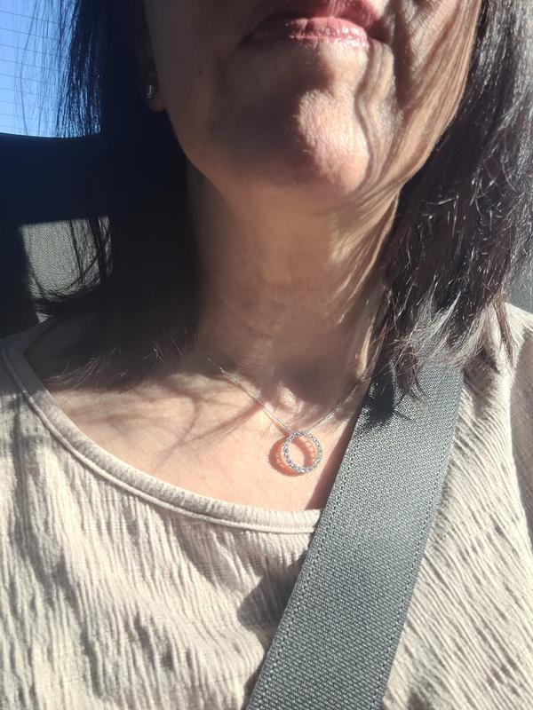 Necklace is lovely. Size of the circle and diamonds is very nice.