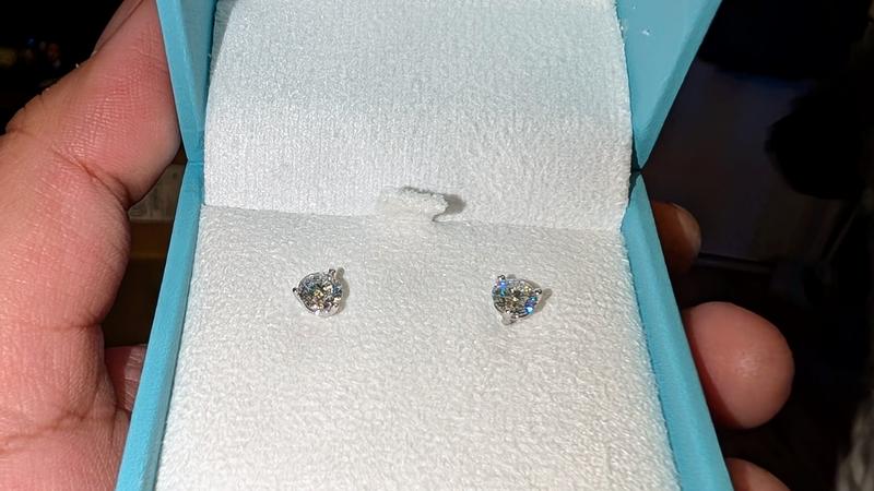 These diamond stud earrings are super sparkly and I was pleasantly surprised when I opened them. The size is perfect for me. I would highly recommend them to others.