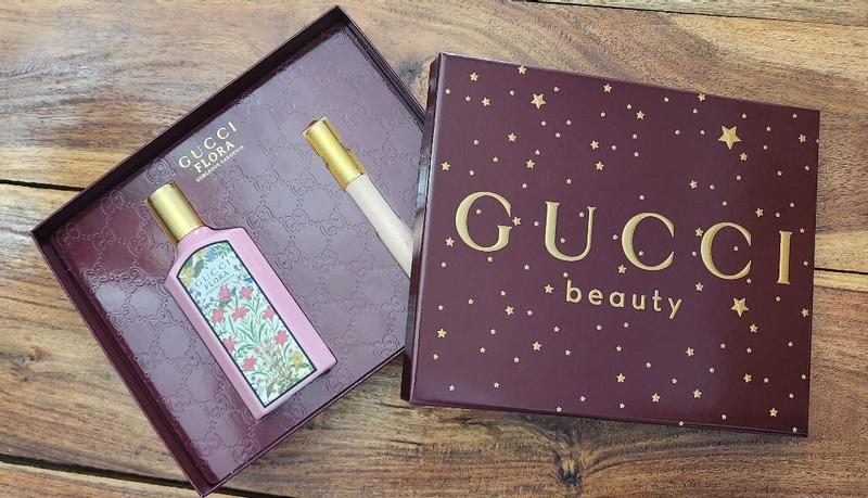 I was SO excited to receive this gift scent. The luxurious Gucci floral perfume and a matching black mascara! Love the packaging. The mascara has a nice consistency with minimal clumping. The perfume is a subtle but long lasting light floral scent. The perfect gift set for you or a loved one.