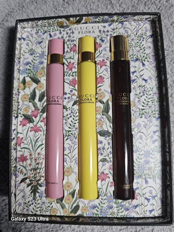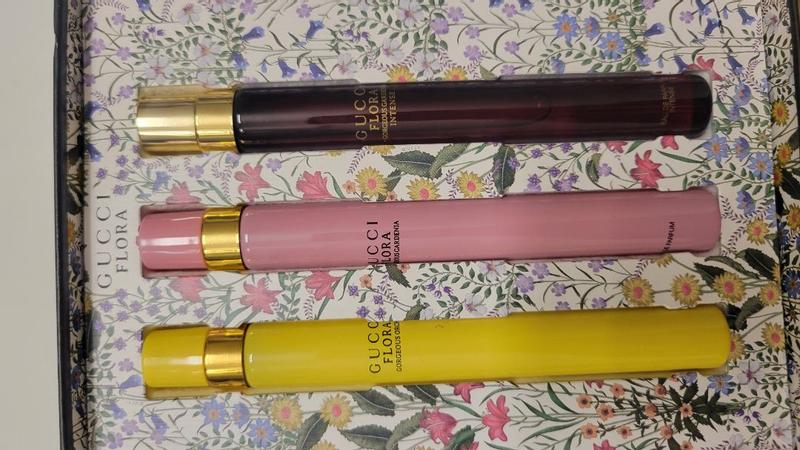 Gucci Flora Gorgeous Trio Eau de Parfum set is the perfect way to discover your favorite Gucci fragrances. All 3 fragrances smell great and are long-lasting. My favorite is Gorgeous Gardenia Intense, but I would wear any of them.