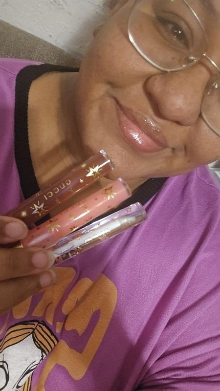 Beautiful gloss that goes on sheer with just enough color. This trio is a great set and all you need in terms of shades. Caught me off guard when my lips started feeling tingly, but I realized it's a plumping formula that definitely did its job. Super fun, lasts awhile, and has a sweet but subtle scent.