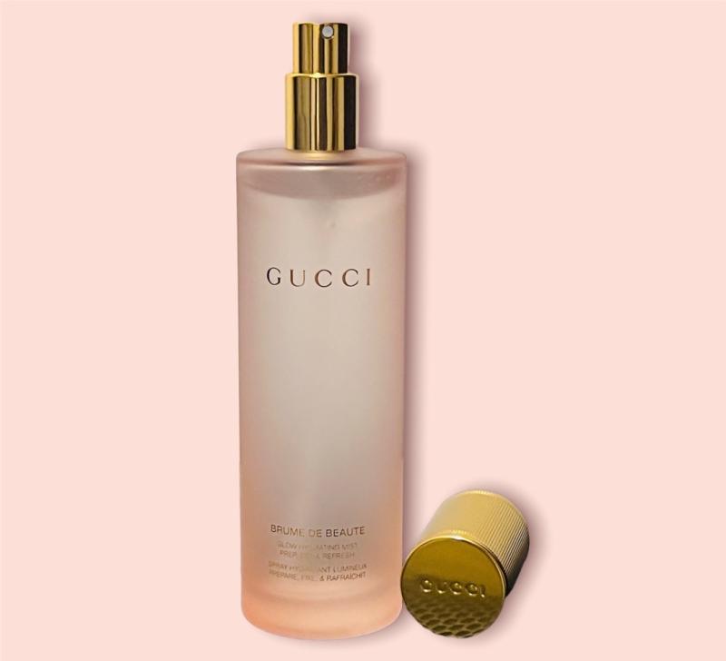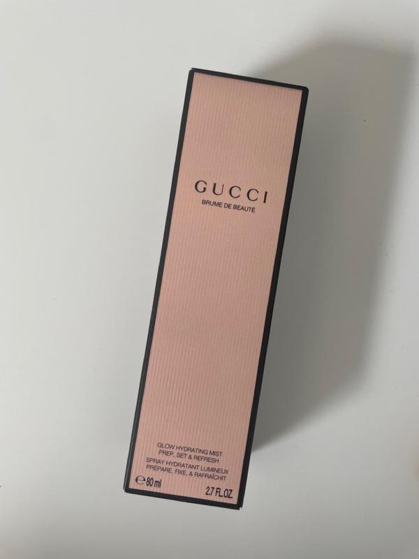 Gucci Brume de Beauté Beauty Mist is a multi-functional mist designed to hydrate and prep the skin, setting makeup and refreshing the complexion throughout the day. It provides a radiant, dewy finish while helping to extend the wear of makeup. The formula includes ingredients like hyaluronic acid to retain moisture, as well as black rose oil and juniper extract for their soothing and anti-inflammatory properties. The mist can be used before makeup as a primer, after makeup to set it, or anytime throughout the day for a hydrating boost. The Gucci Brume de Beauté Beauty Mist is primarily designed as a hydrating and setting spray rather than a fragranced product. Therefore, its scent is usually mild and subtle, intended not to interfere with or overpower any other fragrances you might be wearing. It generally provides a light, fresh scent that dissipates quickly after application. The packaging is both functional and visually appealing, aligning with Gucci's reputation for excellence in both beauty and fashion products.