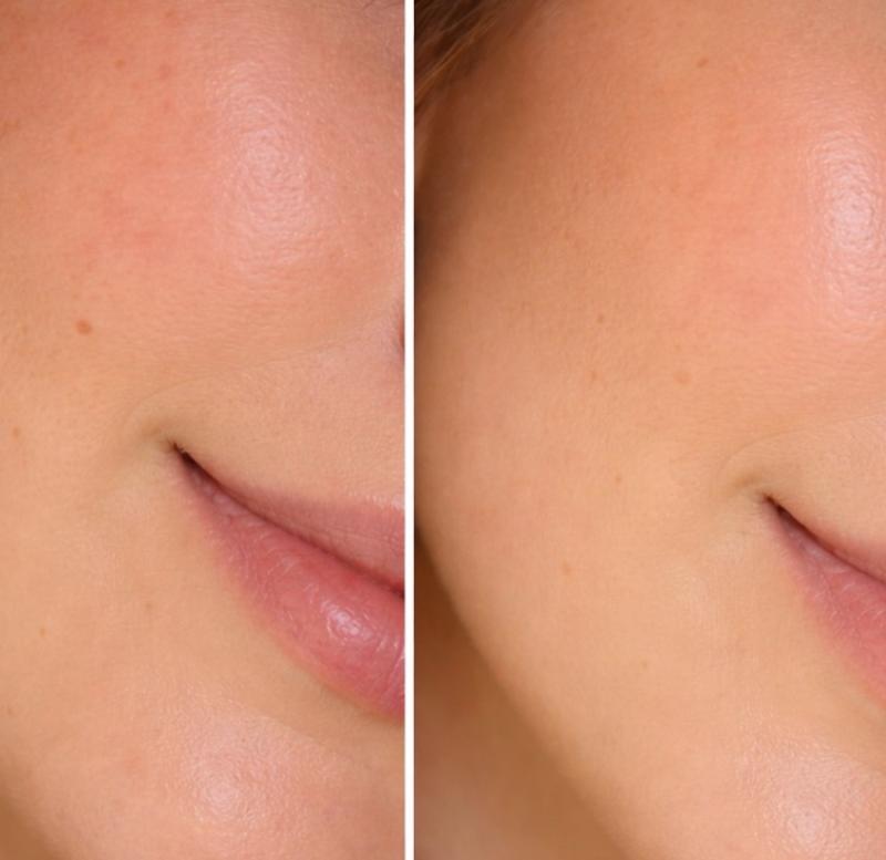 The product doesn’t sit on the skin uniformly and reveals skin underneath. It clumps and piles in spots esp. where skin is dry. This product acts like a CC cream. Didn’t work for me.