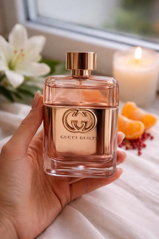 ✨ First impression From the first spray it feels feminine, modern and with that daring touch that characterizes Gucci. It is a perfume that attracts attention without being heavy. 🌷 Main notes • Starter: tangerine and pink pepper (fresh and slightly spiced). • Heart: peach, lilac and geranium (sweet, floral and delicate). • Background: patchouli and amber (warm and sensual). 💖 What does it smell like? It is a fruity floral with a warm background. She feels youthful, flirtatious and elegant at the same time. It is not cloying, it has a perfect balance between freshness and sensuality. ⏳ Duration and projection • Duration: moderate (4–6 hours approx.). • Projection: soft to medium, ideal for everyday life or casual dates. 🌞 When to use it? Perfect for spring and summer, for outings with friends, romantic dates or even for the office if you want something feminine but not invasive. ⭐ Final verdict Gucci Guilty For Her EDT is ideal if you are looking for a feminine, modern and versatile perfume. It has that flirtatious touch that makes you feel confident and elegant without exaggerating.
