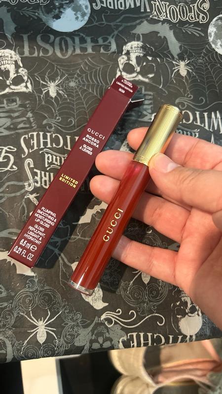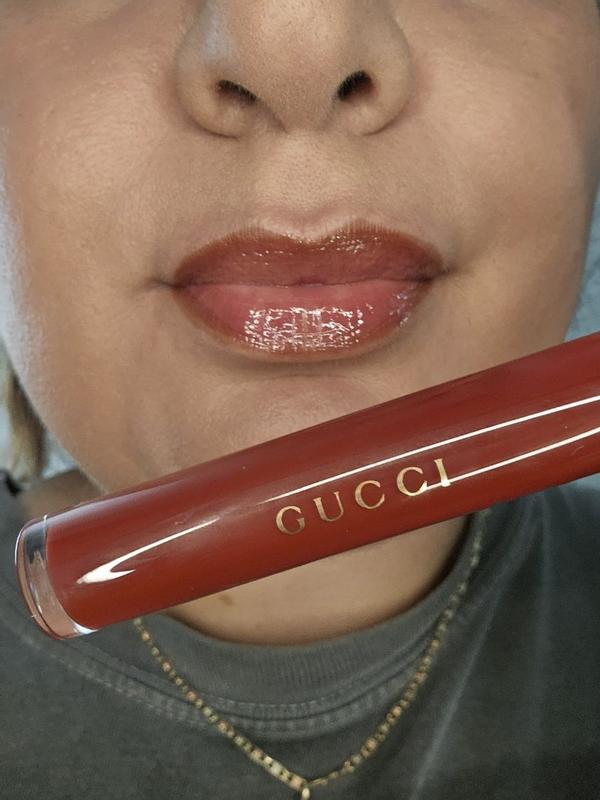 I wrote this on 2 different occasions. This color is beautiful. The Gucci lipgloss has the perfect creamy glossy texture and shine! It is not sticky at all. It has just enough color pigmentation and doesn’t take away from the glossiness. The plumping effect is very minimal compared to other lip plumping glosses. It only lasts a few seconds. When you reapply, you don’t feel the tingle anymore.