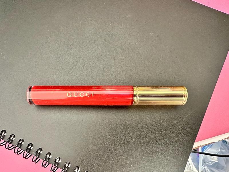 I was so happy to get this Gucci lipstick product as I was looking for a shiny plumping lipstick. Once I put it on, my lips looked noticeably bigger. The red is kind of transparent and not too strong, its more of a lip gloss than a lipstick. The lipstick adds a nice touch of color without being overwhelming and definitely made my shinier and plumper. It also has a nice taste / scent to it!