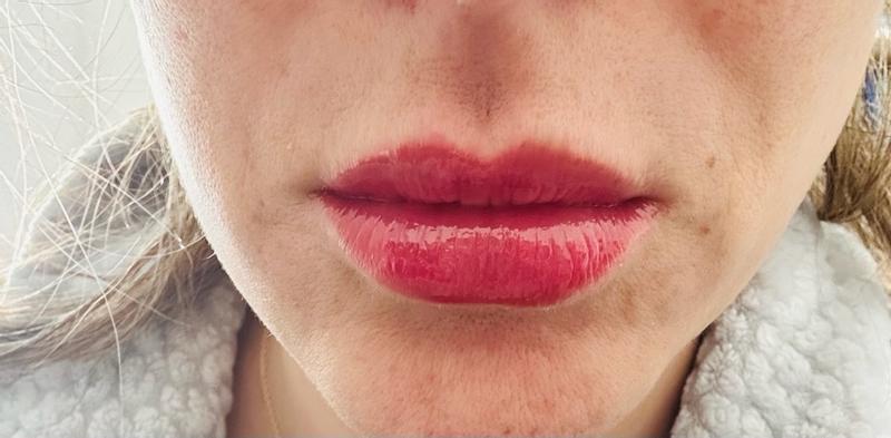I had to put just a dab on it was a little too much red for me but the feel and lasting power is amazing. It lasted all night at my work Christmas party. It wasn’t sticky, didn’t have a bad smell, didn’t rub off on others or my drink. I will definitely be looking out for other colors.
