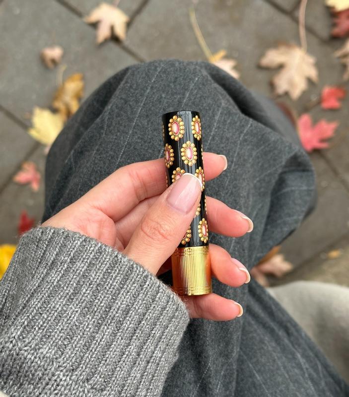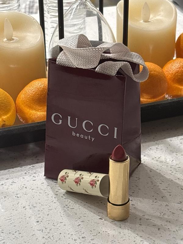 I absolutely love the Gucci Rouge à Lèvres Voile lipstick. It feels lightweight and silky, almost like a tinted lip balm, but with a beautiful sheer color that brightens my whole face. The formula glides on smoothly and keeps my lips soft without drying them out. I adore the soft floral scent — it feels elegant, not overpowering. The vintage gold tube looks stunning on my vanity and makes every application feel special. While it’s not the most long-lasting lipstick, the comfort and glow it gives are totally worth reapplying. A perfect blend of luxury and everyday wearability.