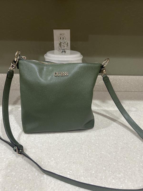 Guess what? I love this Guess bag and the Loden green color. Perfect time of the year for me to use it. There is a zippered pocket on the outside of the bag for easy reach to your cell phone. Three pockets on the inside to hold those hard-to-find small items we are always digging for on the bottom of the bag. Of course, the strap is adjustable to your comfort zone. It is the right size for me as I am not one to carry a bottle of water or a ham and cheese sandwich on the inside. But it will hold your iPad.