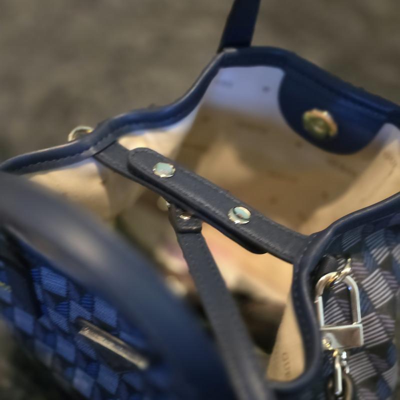 Blue handbag. Very pretty color and pattern.