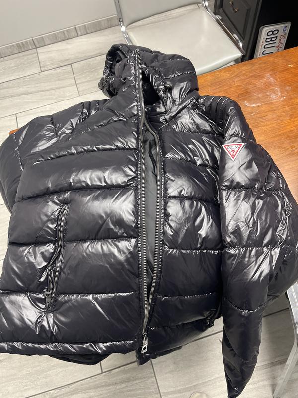 Warm and lightweight, this essential bomber jacket from GUESS offers all-weather protection and features a removable hood for added versatility.