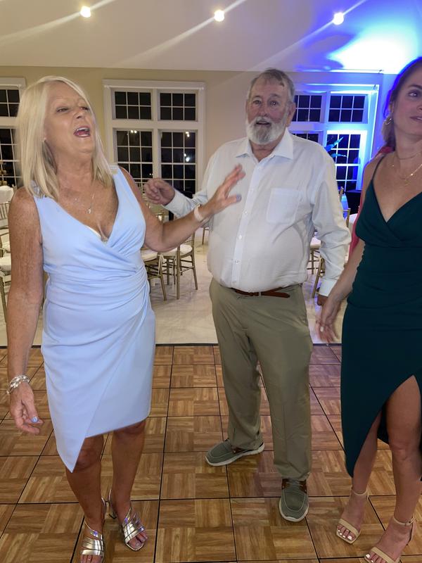 Love this dress…stretchy & comfy…hides my tummy, but shows off the girls. My only complaint is that the fabric snags easily. Other than that, I love it!