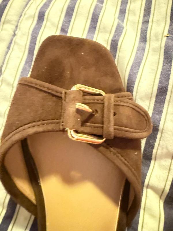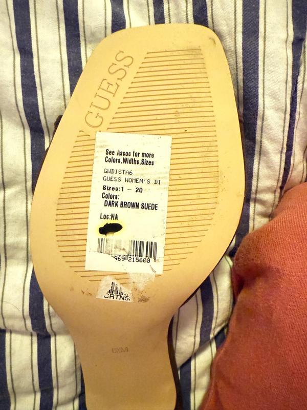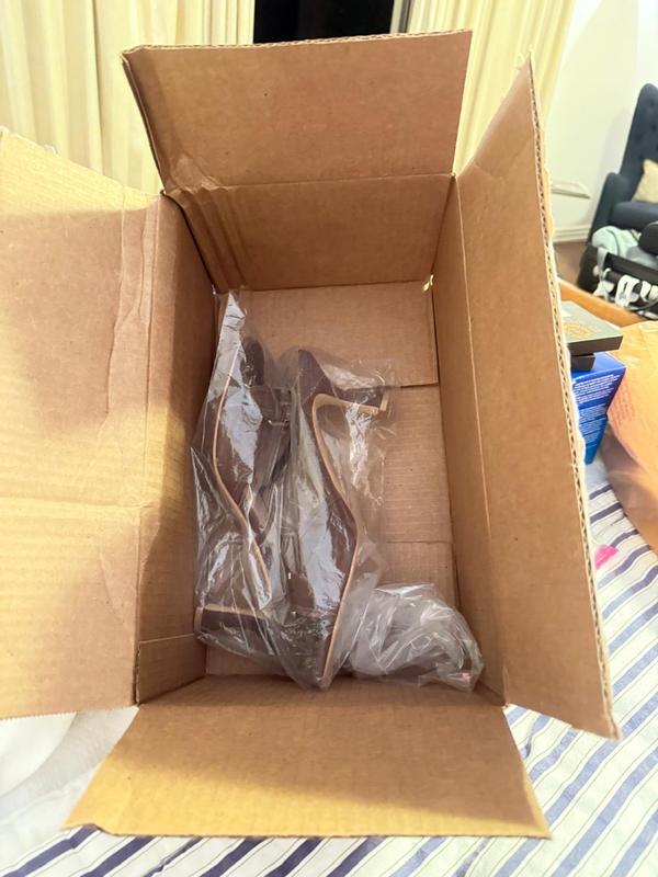 The brown sandals I received had been clearly previously used and returned. They had toe marks in the suede insoles and used soles. They came in a clear plastic bag, loose inside a Macys brown cardboard box. No other packing, paper, original shoe box, etc What is going on with Macy's quality control ? Had to return them. Very disappointed, as I needed them for a trip and there was not enough time left for re-ordering...
