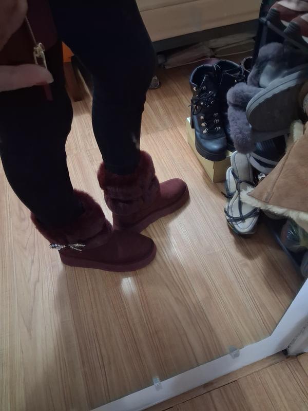 So cute and love the fur lining. Very comfortable and easy to slip on and go. The bow is a cute addition.
