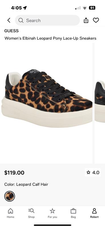 These are very cute and comfortable genuine calf hair platform sneakers! I really wanted to keep them, but I find that Guess' sizes run a bit larger, and with the added bulk of the wider platform sole, they were simply too long for my small feet. Your smallest size 5 is simply too big & bulky on my 4.5 - 5/US size feet. I love the rich leopard coloring and black laces, with white platform sole for extra height, but am sadly returning them. Thank you anyway.