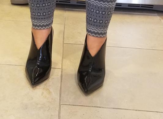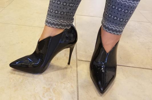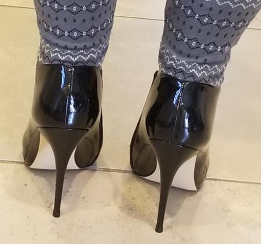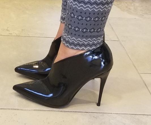 I got these shoes for my SIL because they are right up her alley. The shine of the patent leather that extends all the way around makes them pop against whatever outfit you are rocking. Her only complaint was that the arch support wasn’t particularly good, but she got some inserts and it made a world of difference. If you’re in the market for a sexy pair of booties, you can’t go wrong with these.