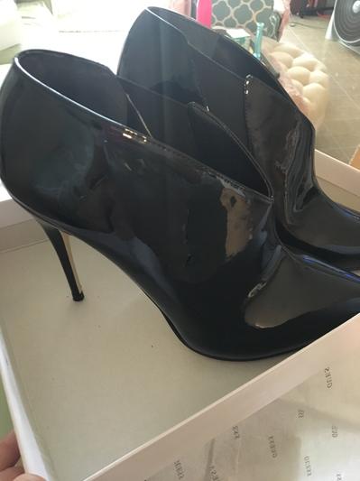 I’m so excited to own a pair of the most cute booties.They look elegant and sexy at the same time.The V-slit in the front is super cute.So,booties run true to size.I got my regular 7 size.Heels are perfect height and very comfortable.Also,what I like about the booties that you can easily put them on and take off.Material is shiny patent leather and I’m ok with that.In my opinion it is a more of a going out shoes.So,If you want to look sexy and elegant you can’t go wrong with the Guess booties. I would definitely recommend them.