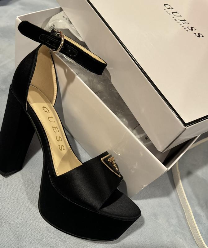 Dress to impress in the Guess Seton platform sandal. A tall platform emphasizes jacquard fabric with signature GUESS triangle hardware and a classic ankle strap. Established. 1981, Guess is a global lifestyle brand and a symbol of a young, adventurous lifestyle.