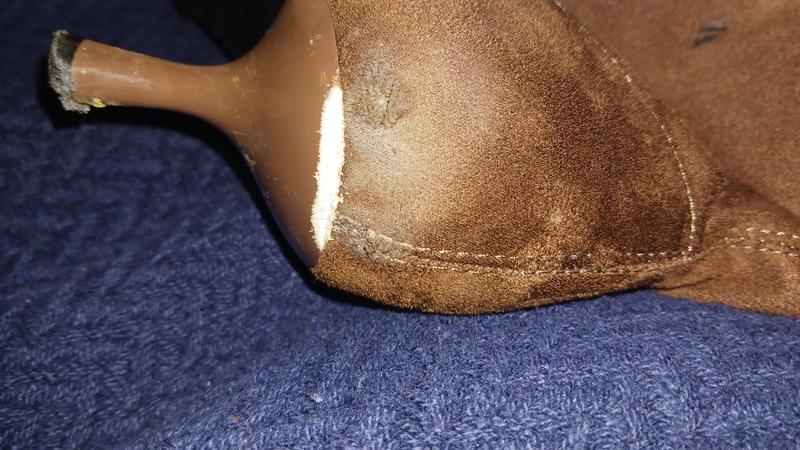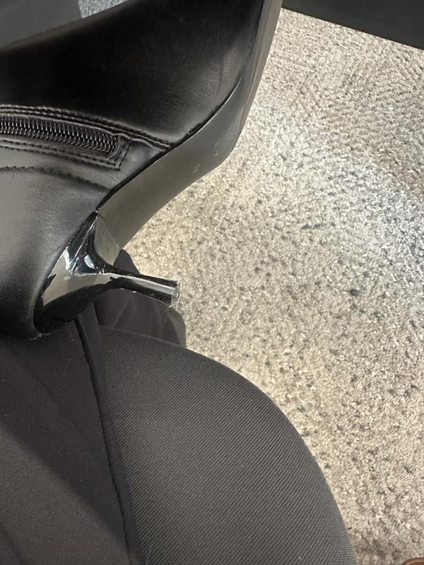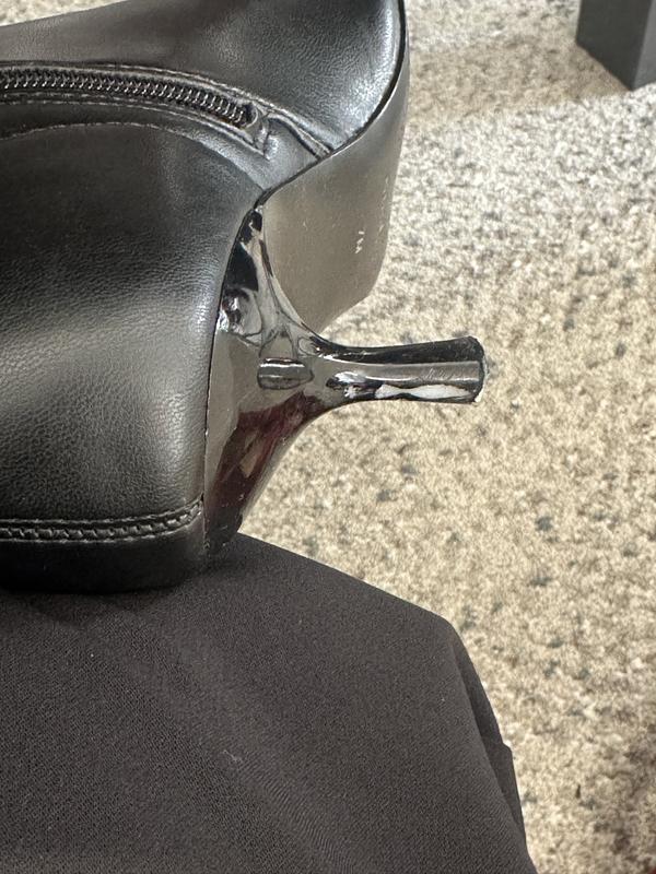 I wore these shoes once and the heel pin completely came off of one of the shoes and is basically gone on the other one. The heel is also scraped up with the black peeling off revealing the plastic heel.
