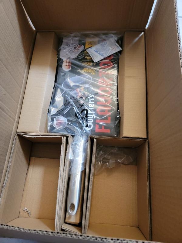 These “non-stick” pans were “sticky” from day one and only got worse. The pans also do not heat evenly. They are not even close in quality to Calphalon or All-Clad. After less than 10 months the Guy Fieri pans are in the garbage. What a complete waste of money.