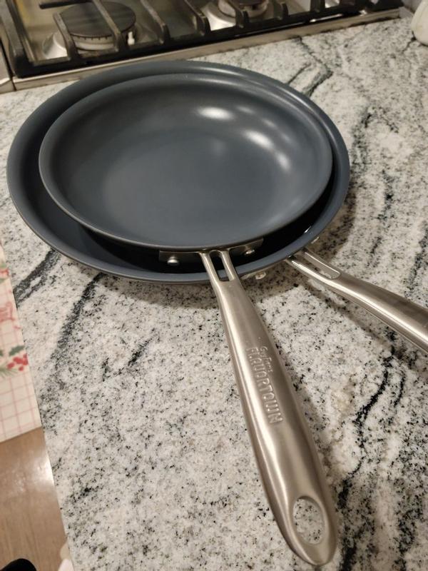 I needed to replace a couple of worn frying pans, so went to Macy's to see what I could find. I only shop for sale items and got lucky - these were half off! The pans are high quality, and the non-stick surface is, so far, perfect for scrambled eggs. We'll see how it goes, but these appear to be 2 of the best frying pans I've ever owned.