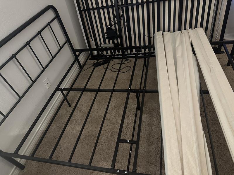 This bed is very sturdy. It holds my adjustable bed flat base with bunkie board under mattress. I had issues putting together but it was rather simple with help of friend to balance and put things together. You’ll need two people to make putting together easier. I love my new bed.