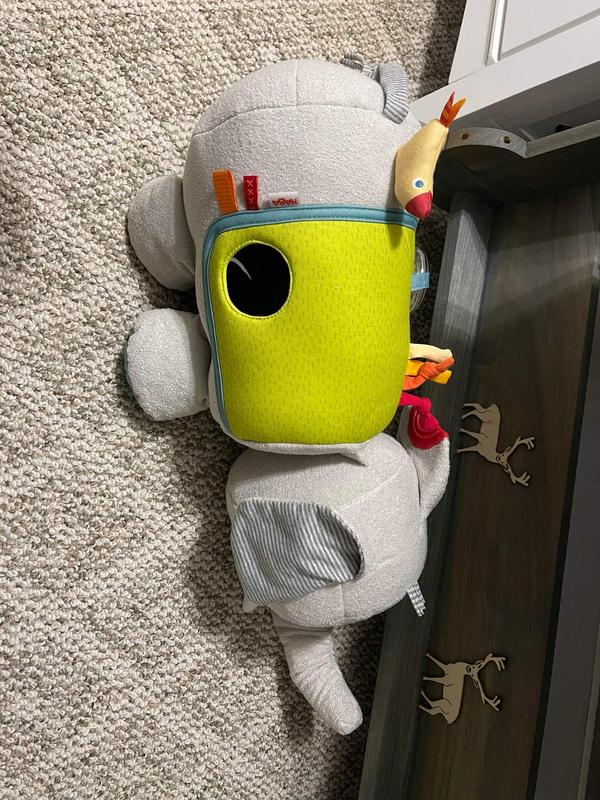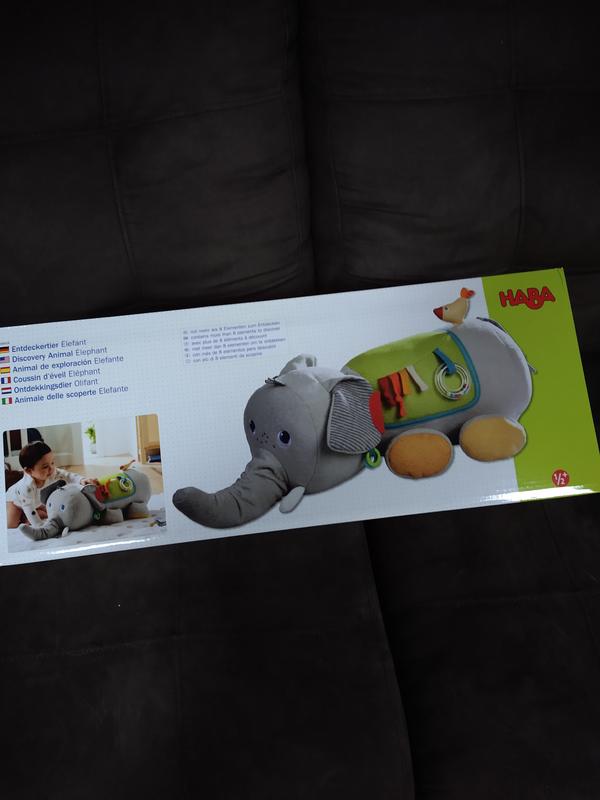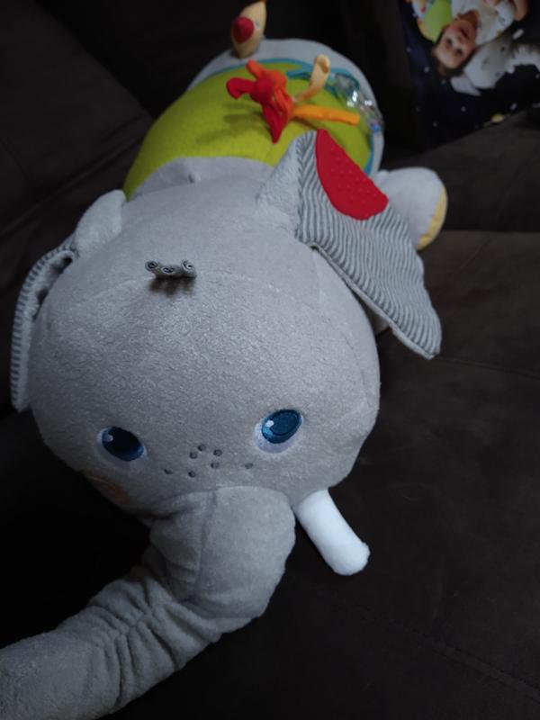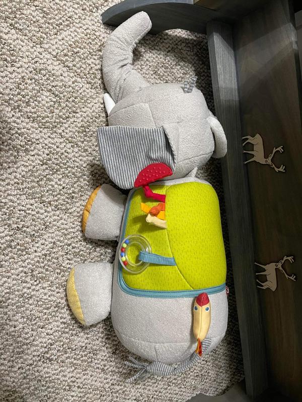 My 6th month old loves this cute elephant discovery pillow. He can chew and grab at the teething rings which are all safely attached. His absolute favorite are the crinkle ears. He sqeezes them and gets so excited over the sounds. Well made and top quality. Definitely a nice product.