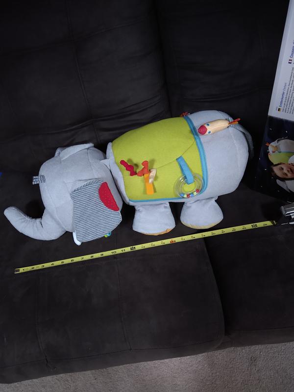 Love this adorable and well-constructed elephant toy. It's quite large in person. Our daughter received ours as a Christmas present from her grandparents, and it made an excellent gift.