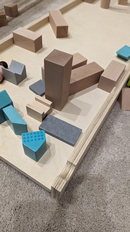 This was a fun addition to our little one's block set! It fit perfectly on the basic HABA wooden blocks, though it was smoother and shinier. They feel very high quality!