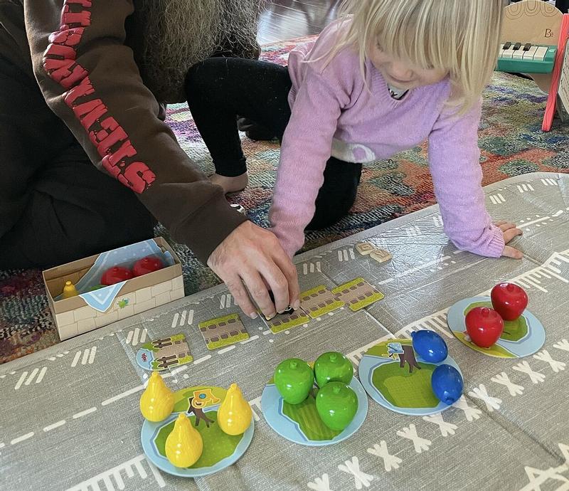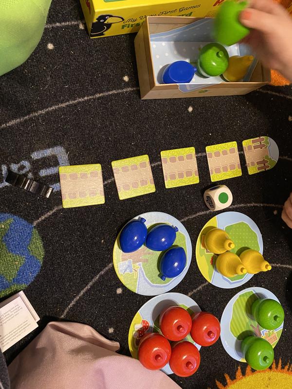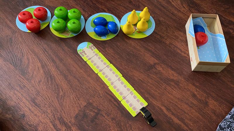 We brought this for our 2 year old daughter and a year and a half later she still loves playing with this game. It’s a short fun game for parents to play with their child. Good for learning colours too. Instructions are clear and game is high quality. Now that she’s older she likes to use the wooden fruit pieces as play food too, feeding them to her toys/dolls. One of the few games for her age that isn’t a memory matching game.