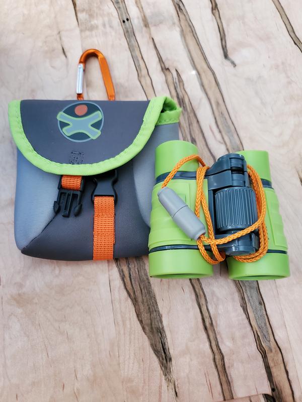 My son absolutely loves these binoculars. The come in a durable pouch that I clip to his hiking backpack. The binoculars have a string that allows kids to wear it around their neck. I was honestly shocked at how clear the view was! These are high quality binoculars, especially for being a children's toy! Definitely recommend these to any Mama's with children who love to explore.