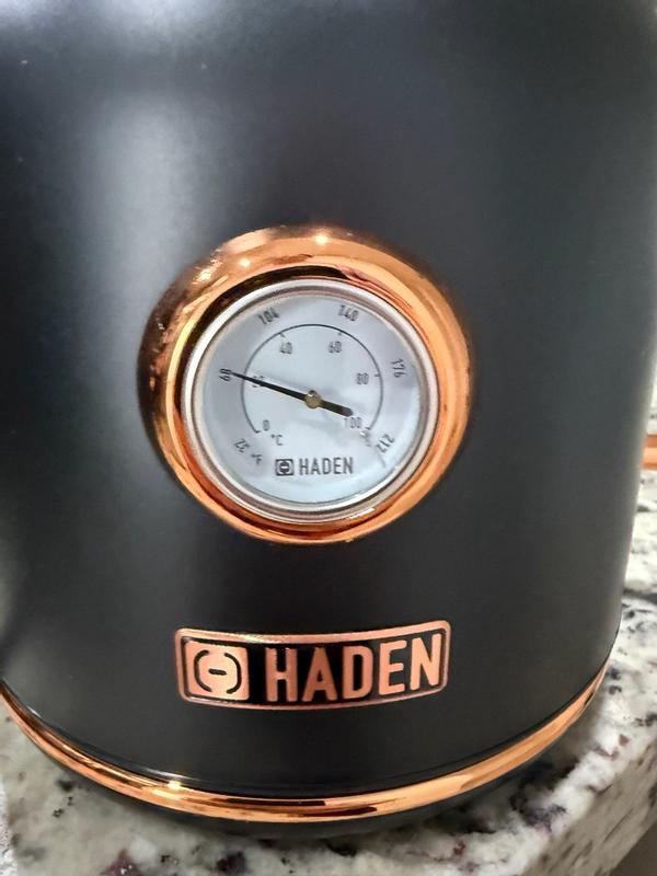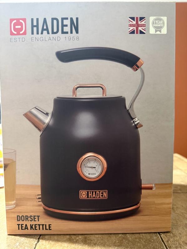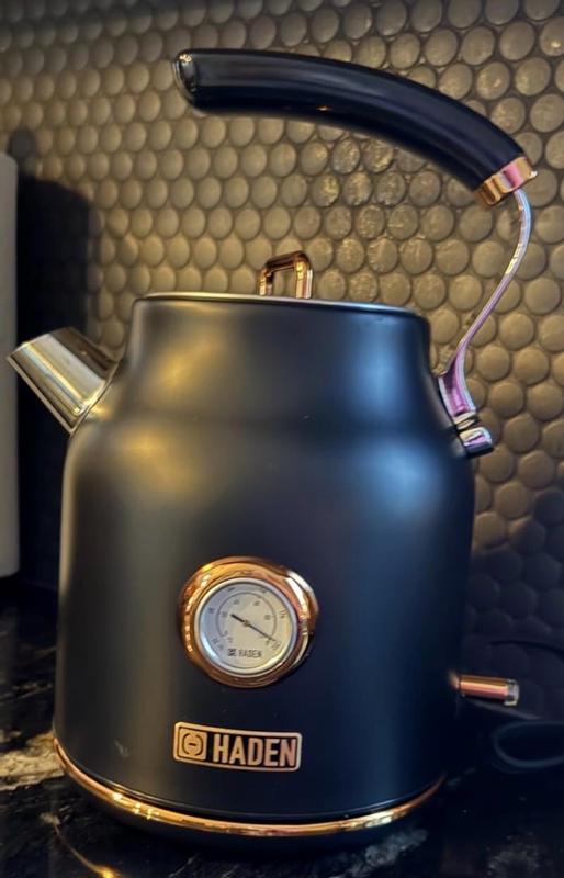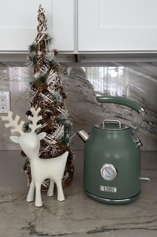 Excellent kettle. It heats water quickly and looks great on the counter. The design feels solid and well made, and the cedar green color gives it a nice retro touch. The handle stays cool, it pours smoothly, and the auto shut-off works perfectly. I use it every day for tea and coffee—absolutely worth it.
