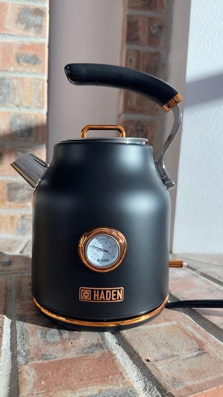 Okay, let’s talk about this Haden Dorset Kettle—because honestly, it’s a gorgeous addition to any kitchen. It’s sleek, well-made, and does exactly what it’s supposed to do. But for the price, I do wish it had a little extra. Design & Build Quality: First things first, the matte black finish with copper and stainless steel accents? Stunning. It definitely makes a statement on the counter, but keep in mind that it’s not the most compact kettle—so if you’re short on counter space, just something to consider. That said, it feels sturdy and well-built, so it’s not just about looks! Capacity & Performance: With a 1.7L capacity, this kettle holds plenty of water, which is perfect for a heavy tea or coffee drinker like me. I love that I don’t have to refill it multiple times a day. The 360° base is also super convenient—it looks good from every angle, and since there’s no fixed cord attachment, there’s no hassle when picking it up and setting it back down. Ease of Use & Features: Pouring is easy and comfortable thanks to the ergonomic handle, though fair warning—the handle does get warm while heating, so keep that in mind. Now, the indicator light is a nice touch, but I feel like it could be more useful. Like, imagine if it also showed whether the water was still warm? That would have been a game-changer. One feature I really appreciate is the automatic shut-off once the water is done boiling—it’s a nice peace-of-mind feature, especially if you tend to forget you left it on (guilty). The One Thing Missing: Temperature Control For the price, I would have loved to see adjustable temperature settings. Yes, the temperature gauge is nice, but being able to set specific temperatures for different drinks (like green tea vs. black tea vs. coffee) would have made this 100% worth the price tag. If this had temperature control, it would totally justify the cost. Cleaning & Maintenance: Super easy! The detachable filter is a great addition, and the fact that it comes with an extra one is a thoughtful touch. Plus, the stainless steel interior didn’t affect my water’s taste (I only use filtered water, though). Final Thoughts: Overall, I really enjoy this kettle, and I know I’ll be using it for years to come. It’s stylish, durable, and does a great job, but I do think a few extra features—like temperature control—would take it to the next level. If you’re looking for a high-quality, stylish kettle and don’t mind the lack of temp settings, this one’s a great pick. Overall Rating: ⭐⭐⭐⭐½ (4.5/5)